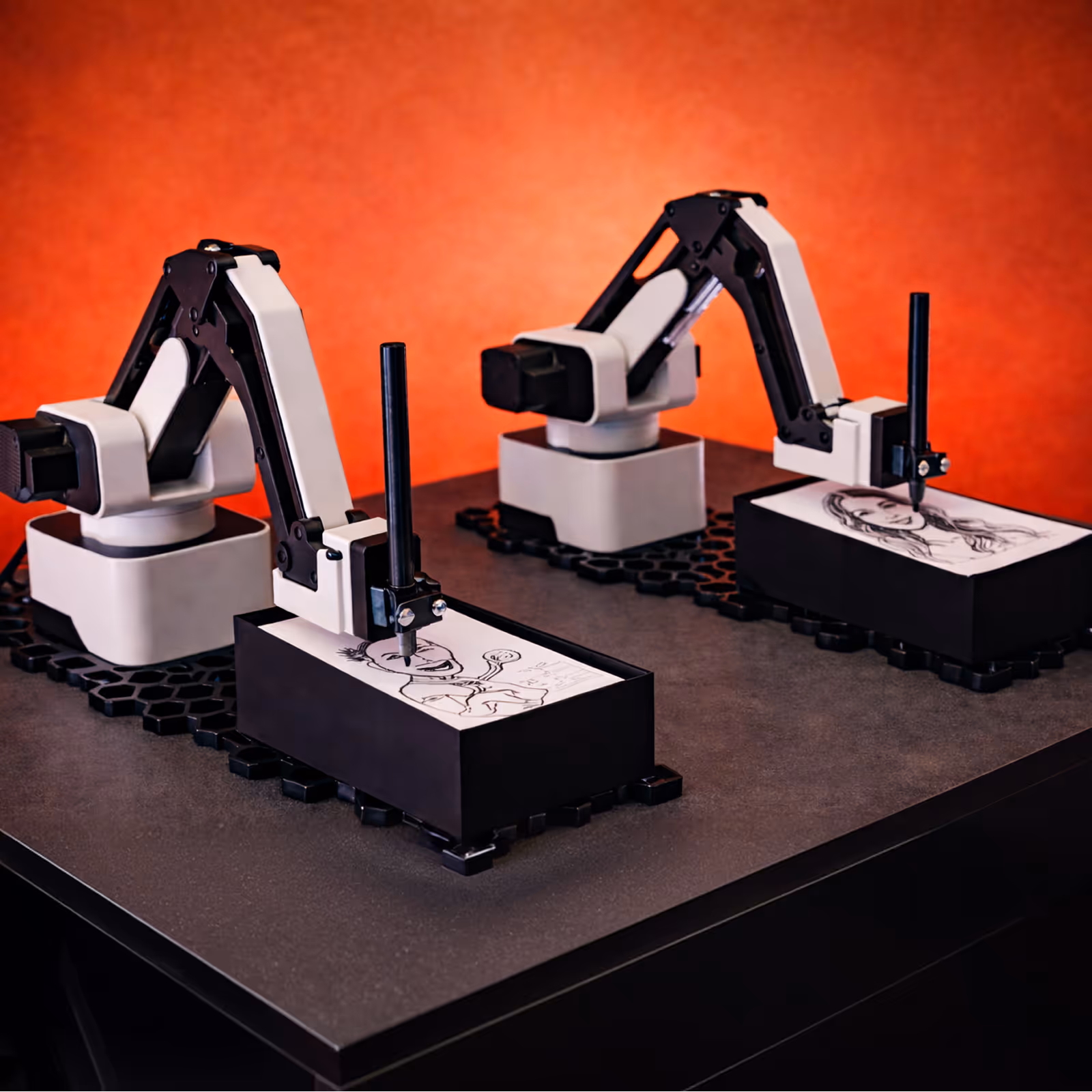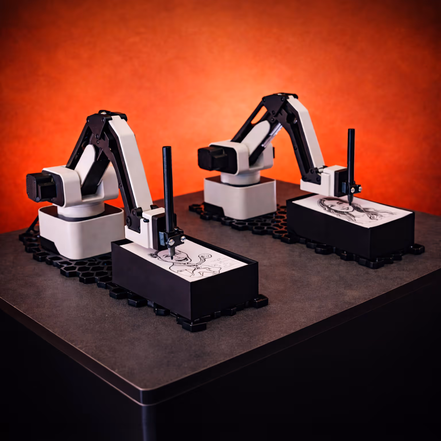 Standardmäßig arbeitet der AI Picasso mit zwei Roboterarmen, die gleichzeitig zeichnen. Ein Arm benötigt etwa 1–2 Minuten pro Sketch. Bei größeren Events kann das System auf bis zu fünf Arme erweitert werden, die parallel arbeiten. So entstehen viele Zeichnungen in kurzer Zeit – und möglichst viele Gäste gehen mit einem persönlichen Sketch nach Hause.